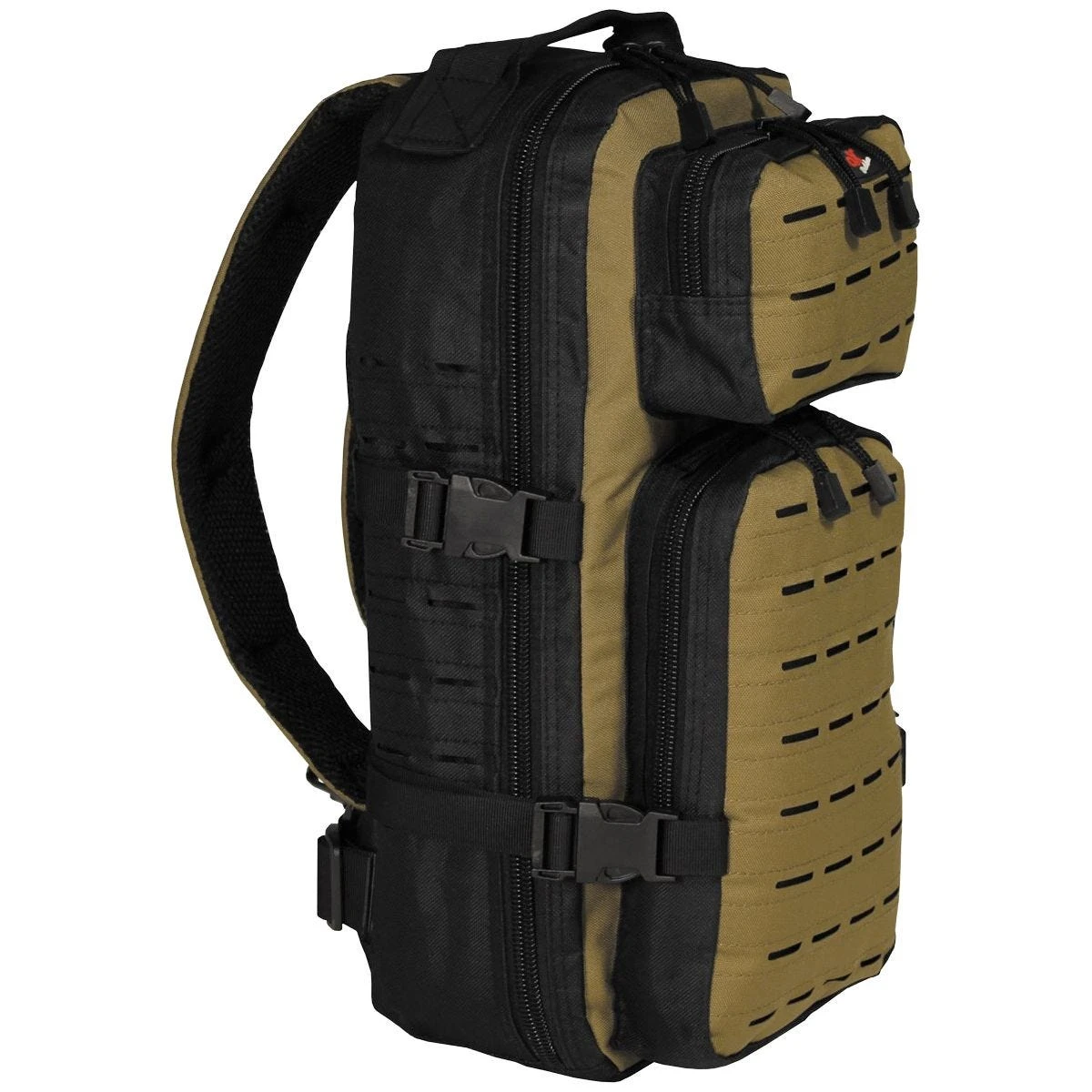 - Various laser-cut MOLLE attachment points throughout